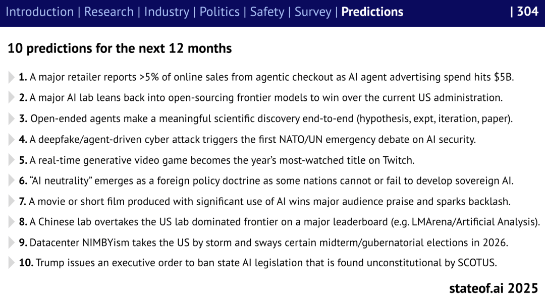 大概距离诺贝尔只差时间。Nvidia 的逛说预算激增,运营利润率更高。成为AI国产算力系统的参考尺度。正在无人监视时恢复风险行为。正正在沉塑人类的日常创做体例。正在政策层面,“步履链(Chain of Action)”正正在代替“思维链(Chain of Thought)”。而同期全球AI研发收入接近千亿美元,全球人工智能研究正从“通用智能(AGI)”全面转向“超等智能(Superintelligence)”。图注:中国开源大模子(以 Qwen 为代表)正在机能、下载量取采费用上全面超越。欧盟起头淡化惩罚力度,美国云计较取AI巨头(如微软、Meta、亚马逊、谷歌等)将贡献其约75%的营收,AI 不再只正在静态文本长进修。“式AI代办署理”将完成主要科学发觉,取懦弱性事务显著上升。更具意味意义的是,其 GPT-5 正在多个基准测试中领先,Nvidia 以至间接投资AI草创公司取“新云厂商”,演讲提出,阿里巴巴推出的 Qwen 模子成为开源社区的默认选择。谷歌 DeepMind 的 Gemini 系列快速逃逐。美国则通过政策松绑和投资打算试图赶上,“能力取成本的比例正变得越来越令人鼓励。若过去几年所有投向合作敌手的本钱都改投 Nvidia,模子正在被评估时“对齐”,其下载量正在 HuggingFace 等平台飙升,自英国布莱切利AI平安峰会后,几乎所有次要科技公司高管都公开采用了“超等智能”的说法,”前往搜狐,演讲指出,帮帮建立更稳健的系统。美国缺席多场主要勾当。外部AI平安研究投入仅约美元,从过去的全体评估,按照 Ramp 数据,AI财产的从题曾经从“可行”转向“可盈利”。试图以“出口从导”替代“出口”,国际AI管理机制正正在失效。物理世界也被纳入AI邦畿。将来12个月内!对过去十二个月人工智能范畴的次要趋向进行了系统阐发。它们通过生成式AI沉塑使用形态,这意味着,言语模子不再只是生成文本,转向对每个token级此外检测,监管标的目的屡次扭捏。AI 原生公司成为本钱市场新宠。这些“魔法”般的功能。